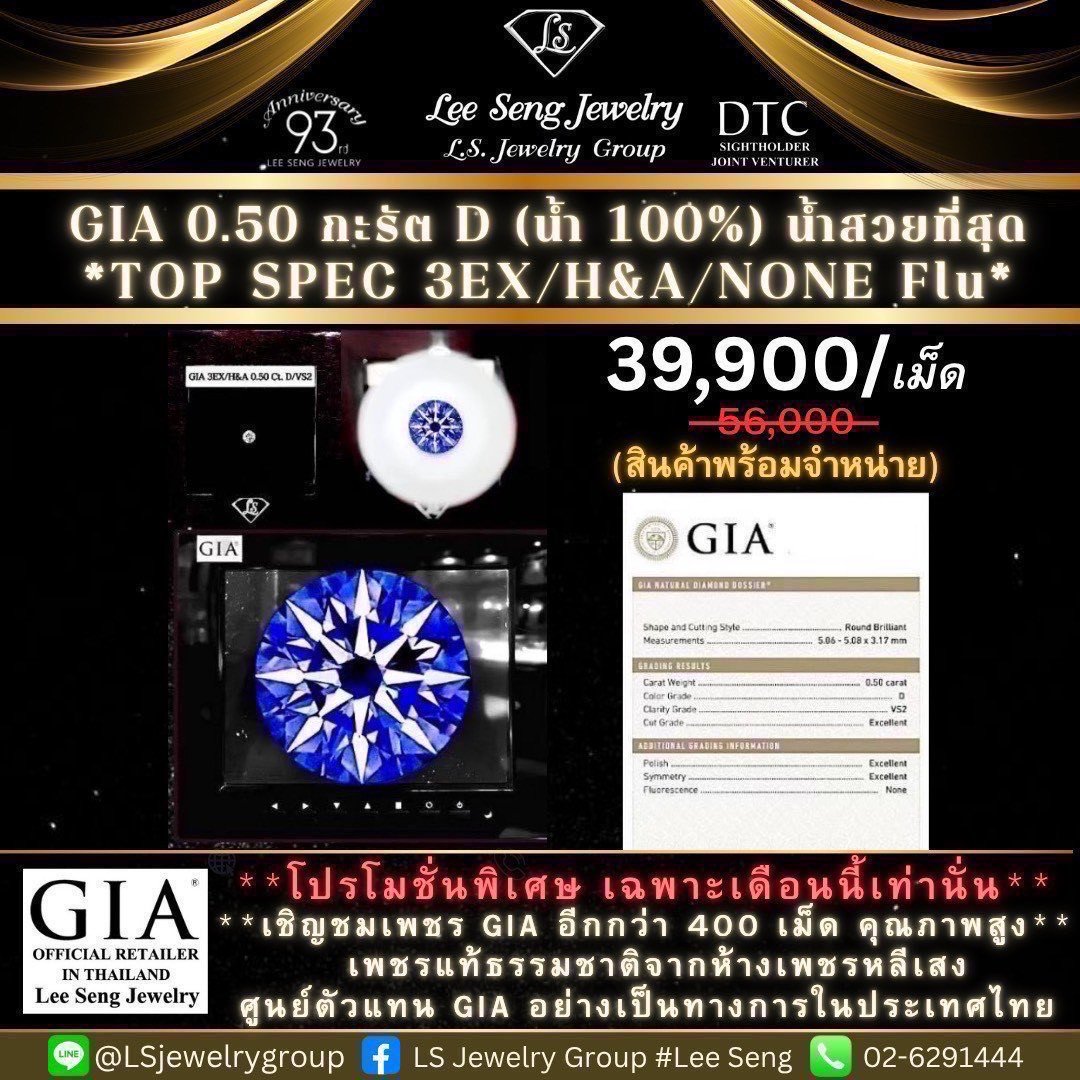 น้ำงามที่สุด (Perfect Heart&Arrow Ideal Cut) 0.50 Ct. เพชรแท้ธรรมชาติ H&A-รัชเชี่ยนคัท 39 เม็ด (น้ำ100-99%)