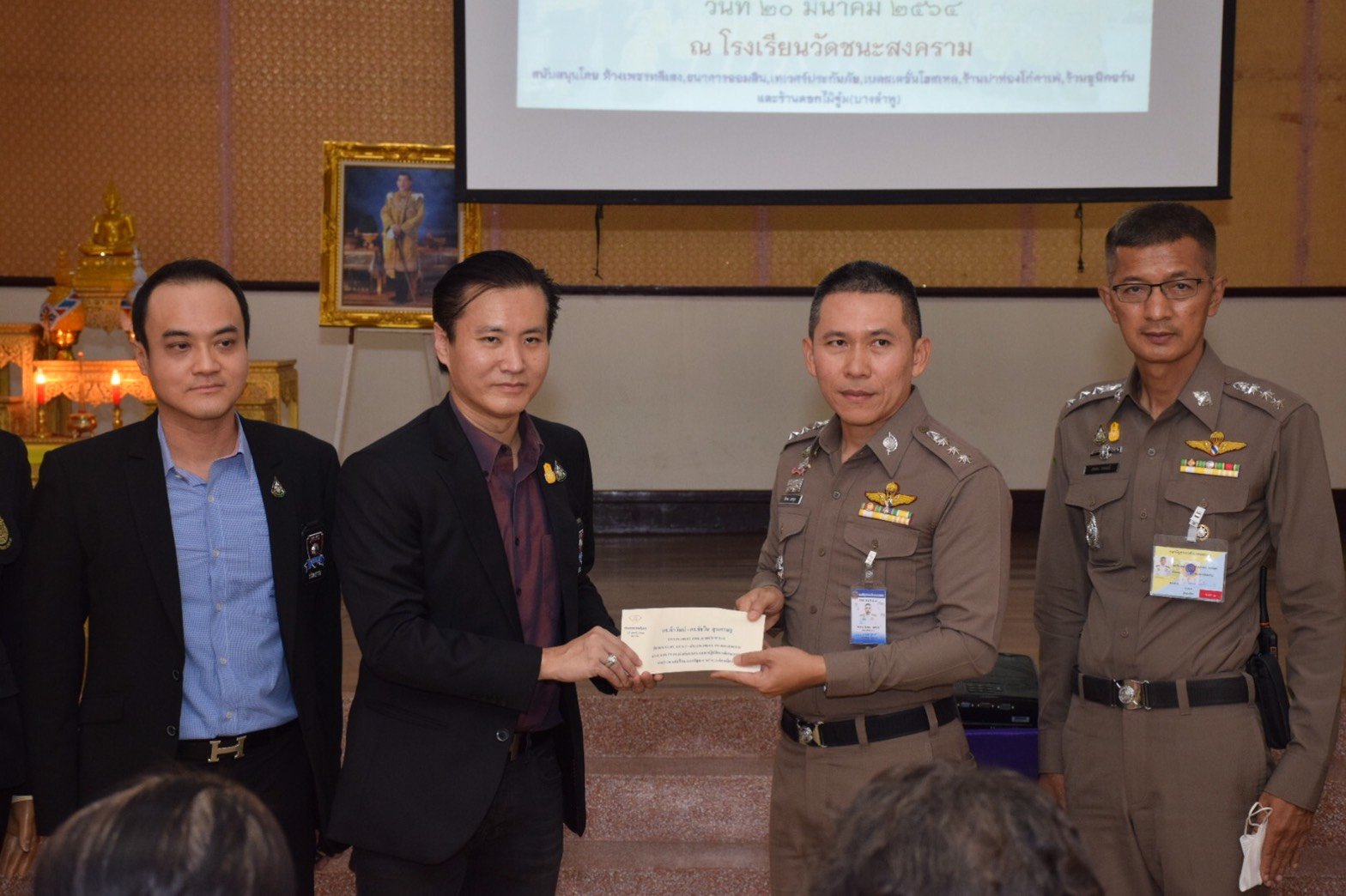 พร้อมกันนั้น ดร.พีรวัฒน์-ดร.ธัชวิน สุรเศรษฐ ได้มอบเงินสนับสนุนกองทุนสร้างเครือข่ายการมีส่วนร่วมของประชาชนในการป้องกันอาชญากรรมในเขตพระนคร ณ โรงเรียนวัดชนะสงคราม วันเสาร์ที่ 20 มี.ค. 64