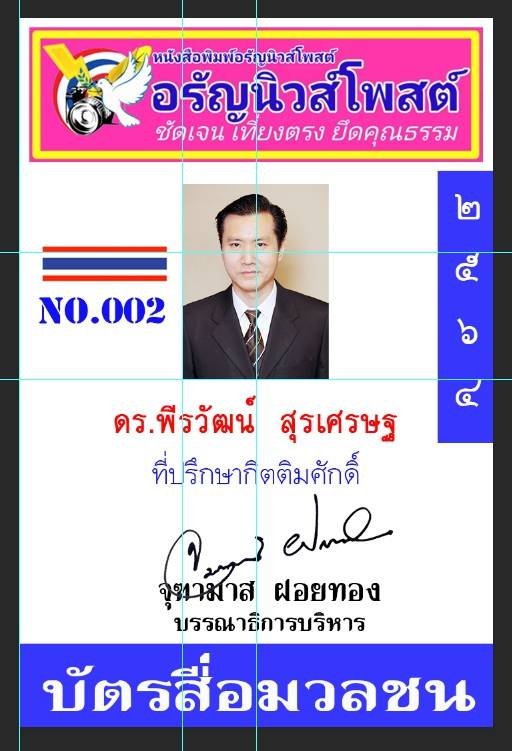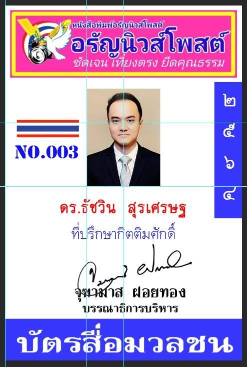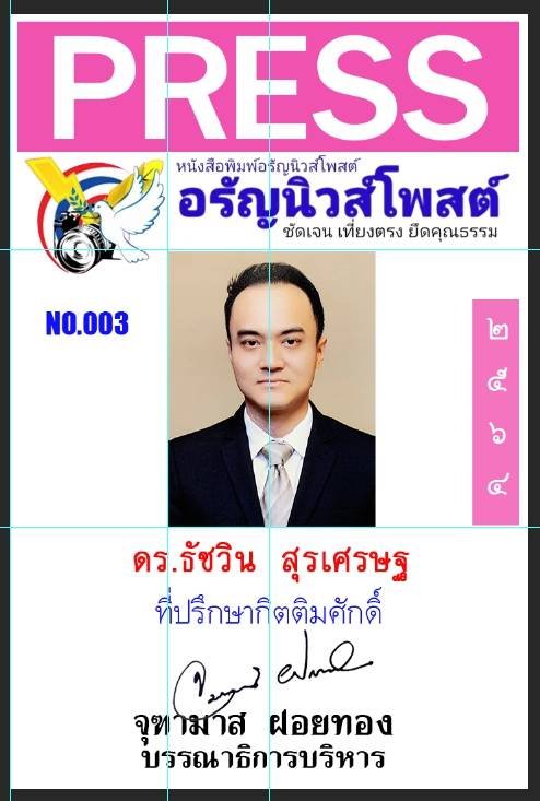 หนังสือพิมพ์อรัญนิวส์ โดย บรรณาธิการ คุณจุฑามาส ฝอยทอง แต่งตั้งพร้อมมอบบัตรสื่อมวลชนและบัตรที่ปรึกษากิตติมศักดิ์ แด่ ดร.พีรวัฒน์-ดร.ธัชวิน สุรเศรษฐ M.D.L.S.Jewelry Group (ห้างเพชรหลีเสง), ประธานกต.ตร.กทม.(ภาคประชาชน), ประธานกต.ตร.บก.น.1, ประธานกต.ตร.กองบังคับการปฏิบัติการพิเศษ191, ประธานกต.ตร.สน.ชนะสงคราม
