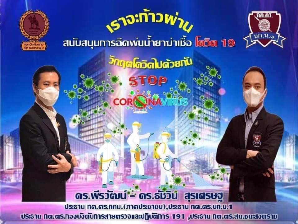 ช่อง 7 รายการสนามข่าว เสาร์-อาทิตย์ ข่าว ดร.พีรวัฒน์-ดร.ธัชวิน สุรเศรษฐ M.D.L.S.Jewelry Group (ห้างเพชรหลีเสง), ประธานกต.ตร.กทม.(ภาคประชาชน), ประธานกต.ตร.บก.น.1, ประธานกต.ตร.กองบังคับการสายตรวจและปฏิบัติการพิเศษ191, ประธานกต.ตร.สน.ชนะสงคราม ได้จัดให้ทีมงานอาสารับผู้ป่วยที่รอความช่วยเหลือ ส่งโรงพยาบาลเพื่อรับการรักษาโดยไม่มีค่าใช้จ่ายใดๆ ทั้งสิ้น นอกจากนั้นฉีดพ่นยาฆ่าเชื้อ ลดการแพร่กระจายเชื้อไวรัส ที่บริเวณชุมชนต่างๆ, ตลาดสด, ศาลเจ้า รวมถึงร้านค้าที่ตั้งอยู่ริมถนนที่อาจมีเชื้อโรค เป็นประจำทุกคืน โดยไม่คิดค่าใช้จ่ายใดๆ ทั้งสิ้น