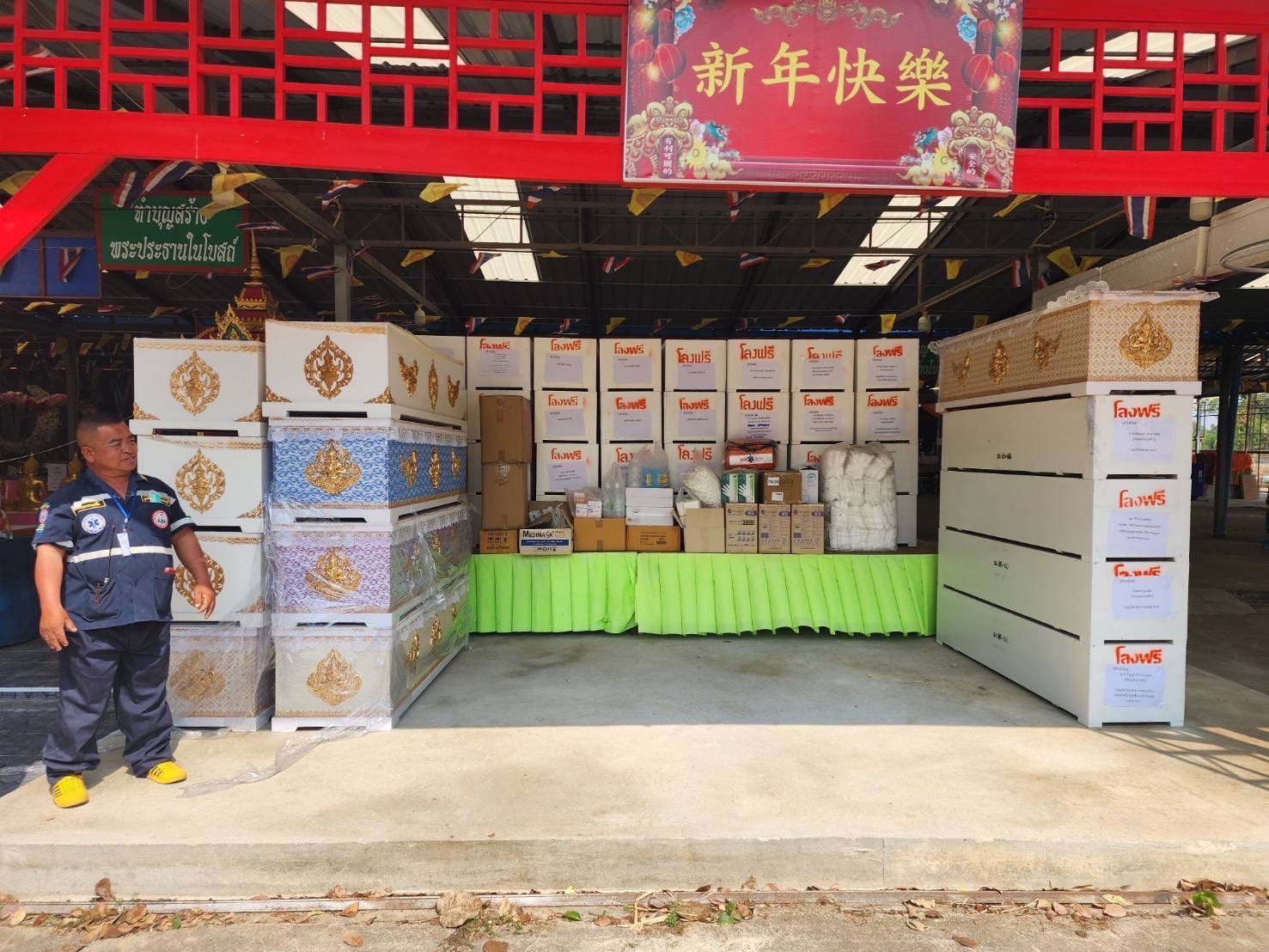 ห้างเพชรหลีเสง มอบโลงให้กับทางวัดโปงโก อำเภอด่านมะขามเตี้ย กาญจนบุรี โดยอาสานำโลง49ใบ พร้อมอุปกรณ์ปฐมพยาบาลเบื้องต้นมอบให้วัดโปงโกเป็นวัดที่อยู่ห่างไกล จากตัวเมืองมาก และมีชุมชนชาวกะเหรี่ยงเป็นส่วนมาก