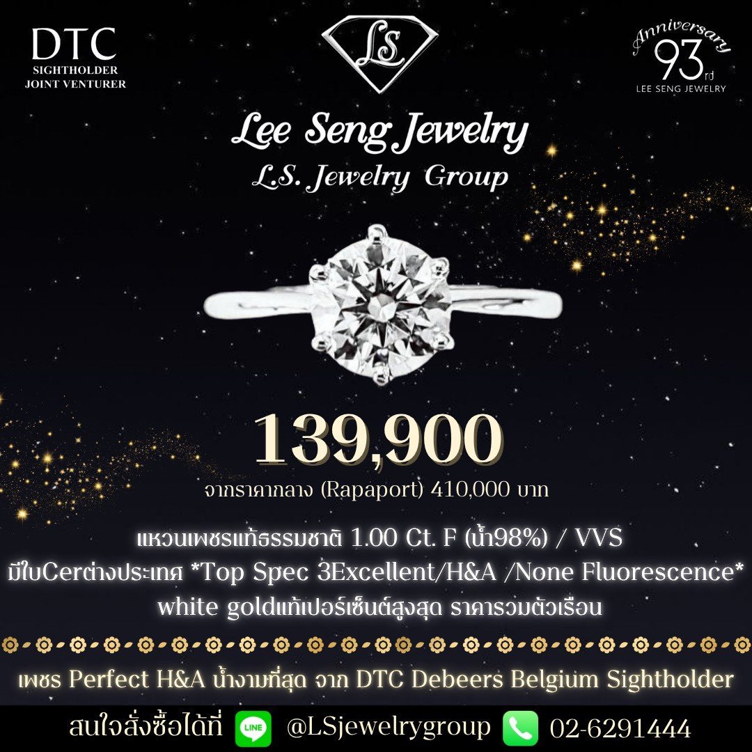 น้ำงามที่สุด (Perfect Heart&Arrow Ideal Cut) 1.02 Ct. F color (น้ำ 99%)/VVS 3Excellent/Heart&Arrow/None Fluorescence (พร้อมใบเซอร์แลปต่างประเทศ)