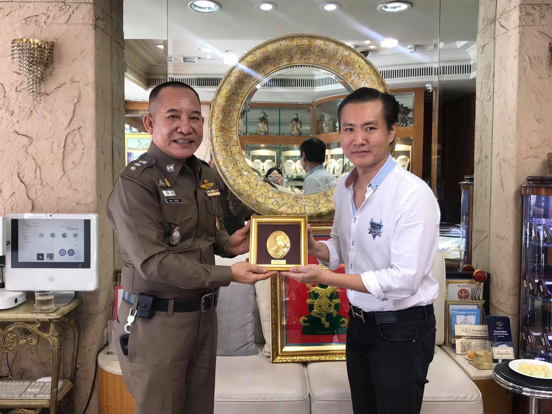 ท่านพ.ต.อ.พรเทพ เพ็ชรรักษ์ ผกก.สภ.ปลายบาง นนทบุรีเข้าพบ ดร.พีรวัฒน์ สุรเศรษฐ ประธานกต.ตร.กทม.(ภาคประชาชน), รองประธานที่ปรึกษากต.ตร.กองบังคับการปฏิบัติการพิเศษ(191), รองประธานที่ปรึกษากองบัญชาการตำรวจท่องเที่ยว และที่ปรึกษากต.ตร.บก.น.6 เพื่อแสดงความยินดีพร้อมทั้งอวยพรเนื่องในวันคล้ายวันเกิดที่ใกล้จะถึง(7 ต.ค.) ด้วยบรรยากาศอบอุ่นและเป็นกันเอง ณ ห้างเพชรหลีเสง L.S.JEWELRY วันที่ 2 ต.ค. 63