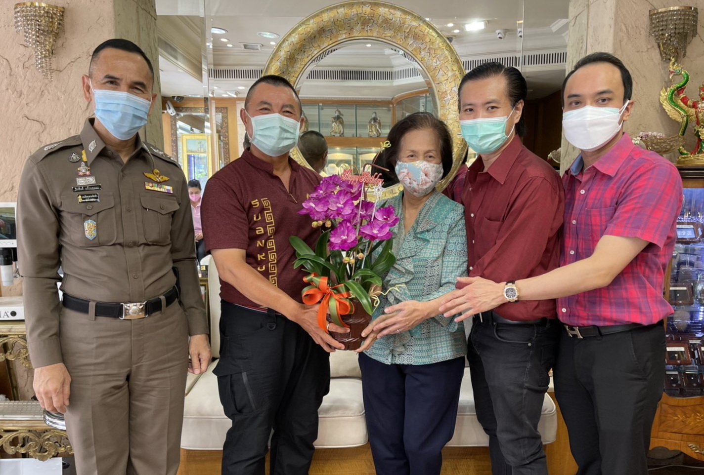 พล.ต.ต.ดร.ปิยะ ต๊ะวิชัย รองผู้บัญชาการตำรวจนครบาล (น.2), พล.ต.ต.จิรสันต์ แก้วแสงเอก รองผู้บัญชาการตำรวจนครบาล (น.5), พล.ต.ต. มนต์ชัย ศรีประเสริฐ ผู้บังคับการตำรวจจังหวัดพังงา อวยพร เนื่องในวันคล้ายวันเกิด(3มิ.ย.) แด่คุณแม่ดร.นฤมล สุรเศรษฐ ประธานผู้บริหาร L.S.Jewelry Group และประธานที่ปรึกษากต.ตร.สน.ชนะสงคราม โดยมี ดร.พีรวัฒน์-ดร.ธัชวิน สุรเศรษฐ ประธานกต.ตร.กทม.(ภาคประชาชน), ประธานกต.ตร.บก.น.1, ประธานกต.ตร.บก.สายตรวจและปฏิบัติการพิเศษ(191), ประธานกต.ตร.สน.ชนะสงคราม ร่วมให้การต้อนรับด้วยบรรยากาศอบอุ่นและเป็นกันเอง ณ ห้างเพชรหลีเสง L.S.Jewelry Group วันศุกร์ที่ 4 มิ.ย. 64