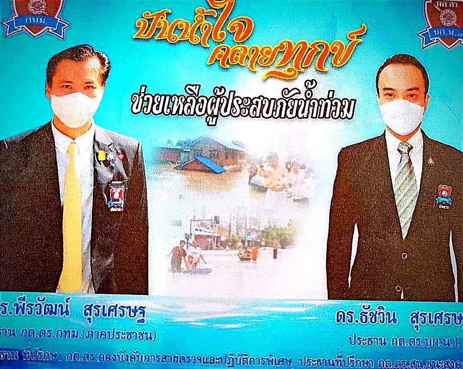 ห้างเพชรหลีเสง (L.S.Jewelry Group) โดย ดร.นฤมล-ดร.พีรวัฒน์-ดร.ธัชวิน สุรเศรษฐ M.D.L.S.Jewelry Group (ห้างเพชรหลีเสง), ประธานกต.ตร.กทม.(ภาคประชาชน), ประธานกต.ตร.บก.น.1, ประธานกต.ตร.บก.สายตรวจและปฏิบัติการพิเศษ(191), ประธานกต.ตร.สน.ชนะสงคราม ได้ส่งทีมอาสาลงพื้นที่น้ำท่วม นำข้าวสาร, อาหารแห้ง, น้ำดื่ม และยารักษาโรค เข้าช่วยเหลือประชาชนที่ประสพภัยในพื้นที่ อำเภอบ้านหมี่ จังหวัดลพบุรี