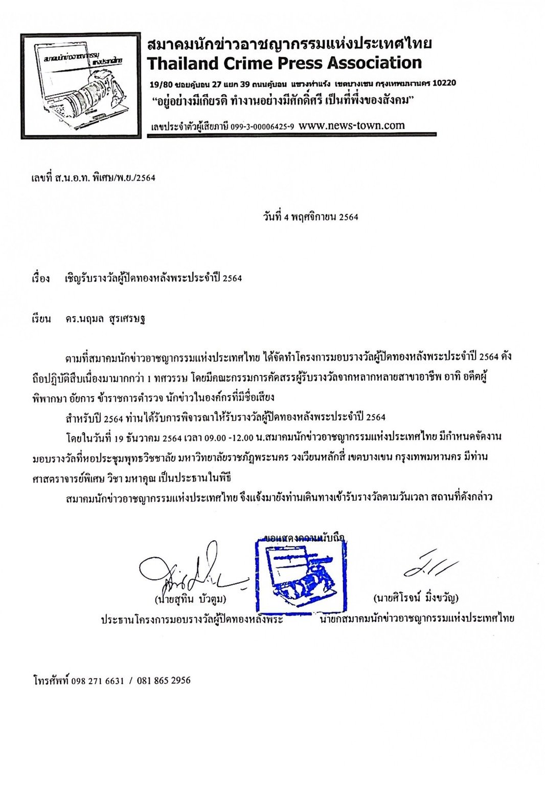 ดร.นฤมล สุรเศรษฐ ประธานกลุ่ม L.S. Jewelry Group(ห้างเพชรหลีเสง) ได้รับรางวัลผู้ปิดทองหลังพระ ประจำปี 2564 จาก ท่านศาสตราจารย์พิเศษ วิชา มหาคุณ โดยมี ท่านสุทิน บัวตูม (เลขาท่านศาสตราจารย์พิเศษวิชา มหาคุณ) เป็นผู้เชิญหนังสือรับรางวัล พร้อมด้วย ดร.พีรวัฒน์-ดร.ธัชวิน สุรเศรษฐ ประธานกต.ตร.กทม.(ภาคประชาชน), ประธานกต.ตร.บก.น.1, ประธานกต.ตร.บก.สายตรวจและปฏิบัติการพิเศษ(191) ซึ่งเป็นรางวัลอันทรงเกียรติและมีคุณค่าอย่างสูงสุด มอบให้ผู้ที่มุ่งมั่นทำความดี โดยไม่หวังสิ่งตอบแทน ณ ห้างเพชรหลีเสง พระนคร วันจันทร์ที่ 15 พ.ย. 64