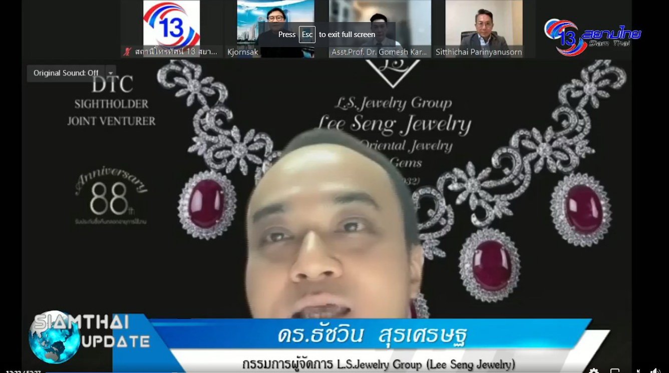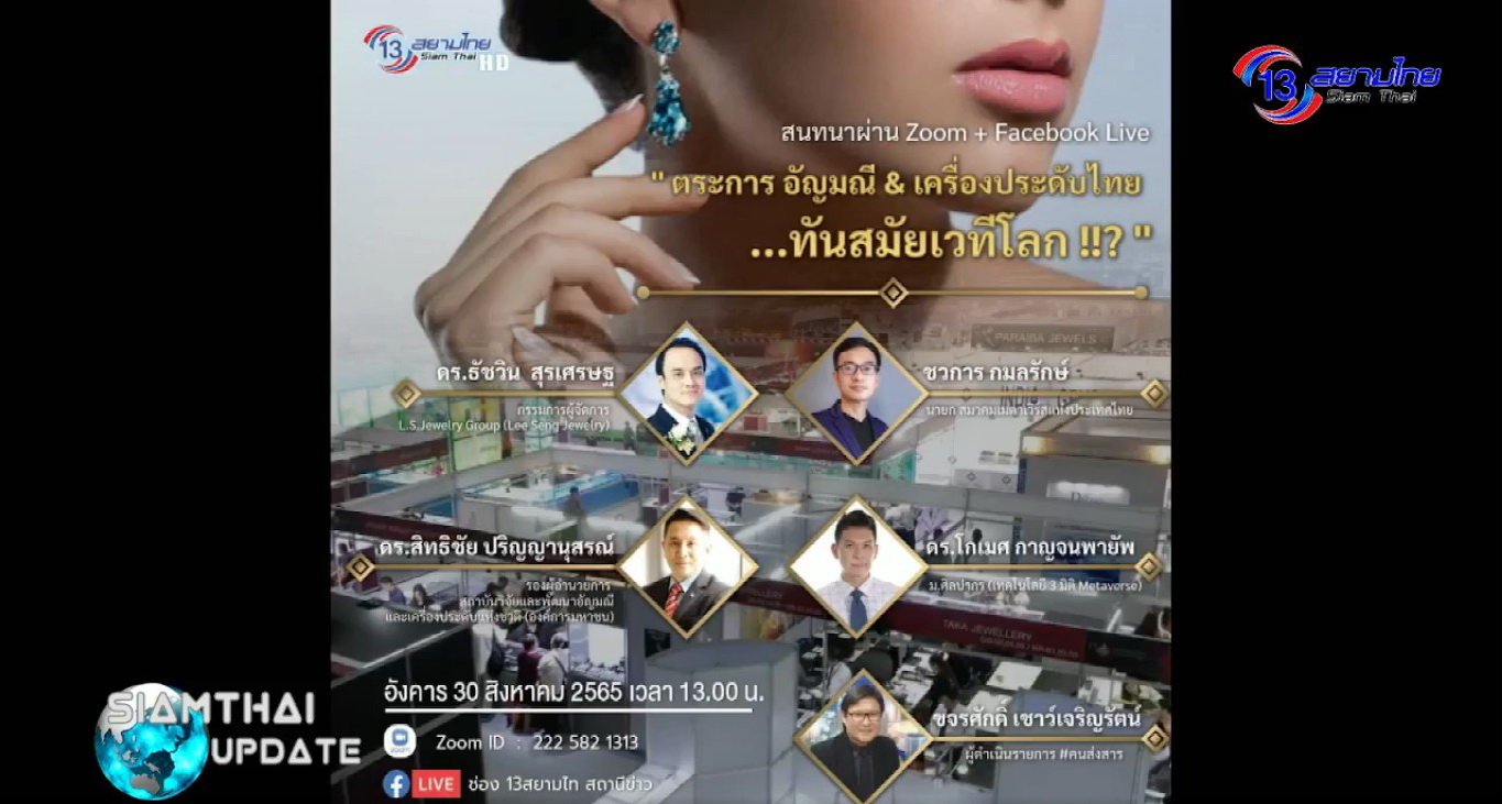 ดร.ธัชวิน สุรเศรษฐ กรรมการผู้จัดการ L.S.Jewelry Group (Lee Seng Jewelry) ได้ร่วมเสวนาเรื่อง “ตระการอัญมณีและเครื่องประดับไทย สว่างไสวเวทีโลก” ซึ่งจัดโดย ดร.สิทธิชัย ปริญญานุสรณ์ รองผู้อำนวยการ สถาบันวิจัยและพัฒนาอัญมณีและเครื่องประดับแห่งชาติ (องค์การมหาชน)(GIT) พร้อมด้วย ดร.โกเมศ กาญจนพายัพ ม.ศิลปากร(เทคโนโลยี 3 มิติ Metaverse) และคุณชวการ กมลรักษ์ นายกสมาคมเมตาเวิร์สแห่งประเทศไทย ซึ่งมี คุณขจรศักดิ์ เชาว์เจริญรัตน์ เป็นผู้ดำเนินรายการ โดยผ่าน Facebook Live “ช่อง 13 สยามไท สถานีข่าว” วันอังคารที่ 30 ส.ค. 65