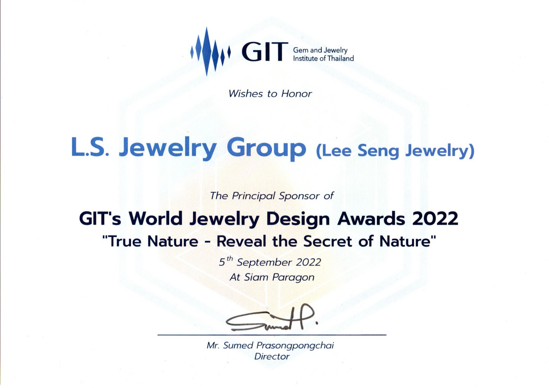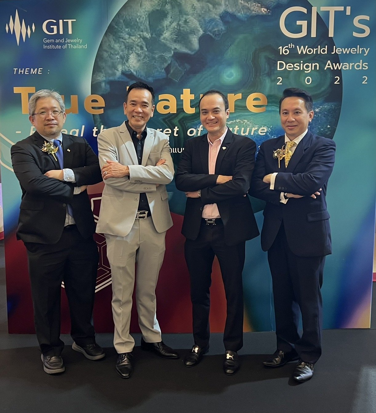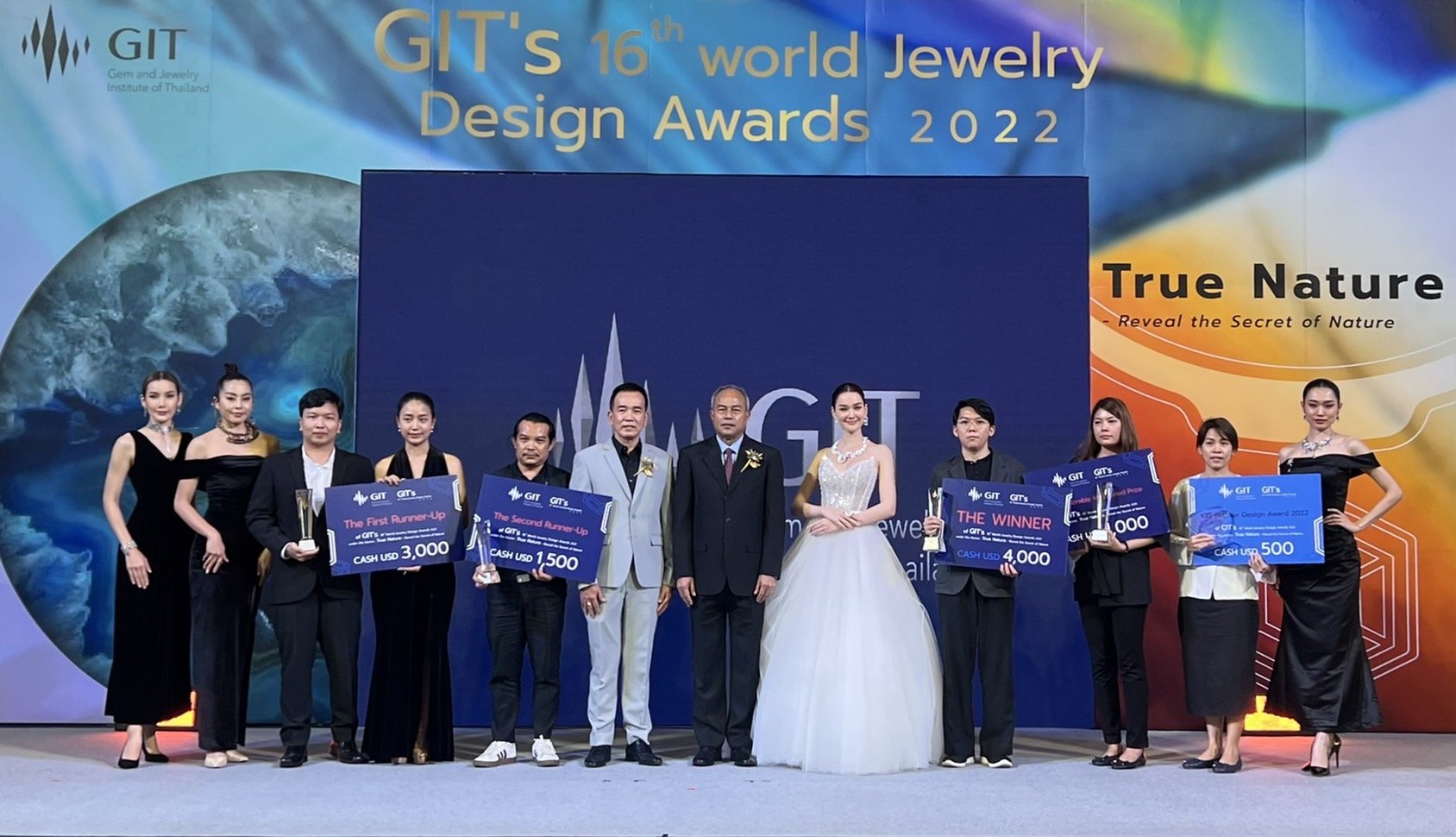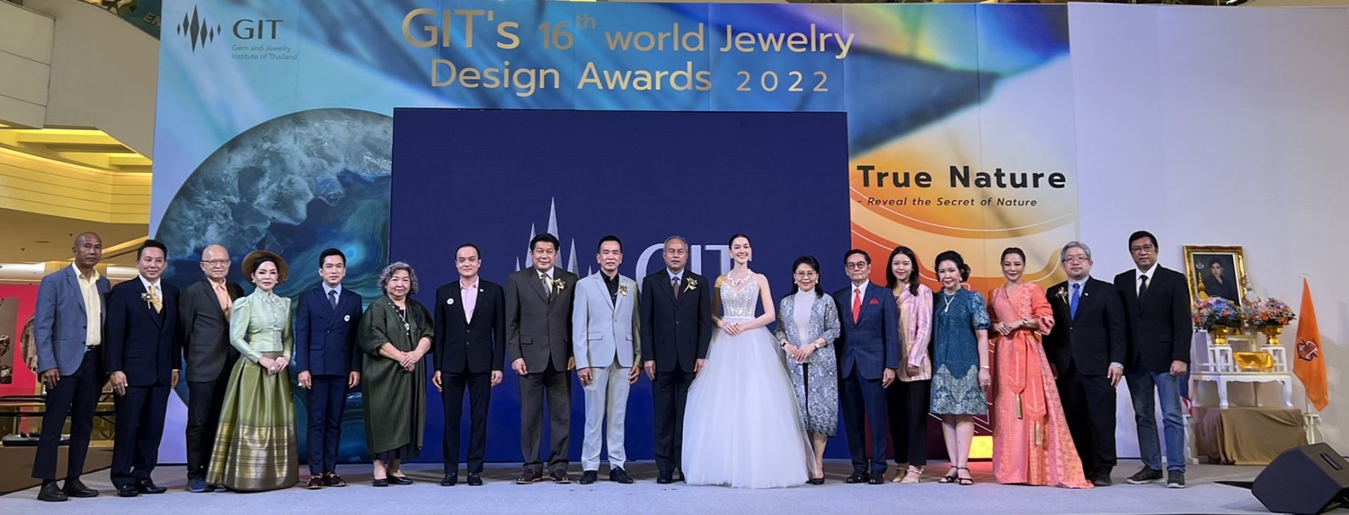 คุณสินิตย์ เลิศไกร รัฐมนตรีช่วยว่าการกระทรวงพาณิชย์ เป็นประธานเปิดงาน และ ผอ.สุเมธ ประสงค์พงษ์ชัย ผอ.สถาบันวิจัยและพัฒนาอัญมณีและเครื่องประดับแห่งชาติ (GIT)(องค์การมหาชน) เป็นประธานจัดงาน โดยมี ดร.ธัชวิน สุรเศรษฐ M.D. L.S. Jewelry Group (ห้างเพชรหลีเสง) ร่วมพิธีมอบรางวัลชนะเลิศ โครงการประกวดออกแบบเครื่องประดับ GIT’s World Jewelry Design Awards 2022 ชิงถ้วยพระราชทานจากสมเด็จพระเจ้าน้องนางเธอ เจ้าฟ้าจุฬาภรณวลัยลักษณ์ อัครราชกุมารี กรมพระศรีสวางควัฒน วรขัตติยราชนารี ภายใต้ธีม “True Nature - Reveal the secret of nature” พร้อมด้วย รองผอ. อาทิเช่น ดร.สิทธิชัย ปริญญานุสรณ์, คุณทนง ลีลาวัฒนสุข เป็นต้น, ผู้ทรงคุณวุฒิ คณะกรรมการท่านอื่นๆ จากทั้งประเทศไทยและต่างชาติ และแขกผู้มีเกียรติ ร่วมเป็นสักขีพยาน