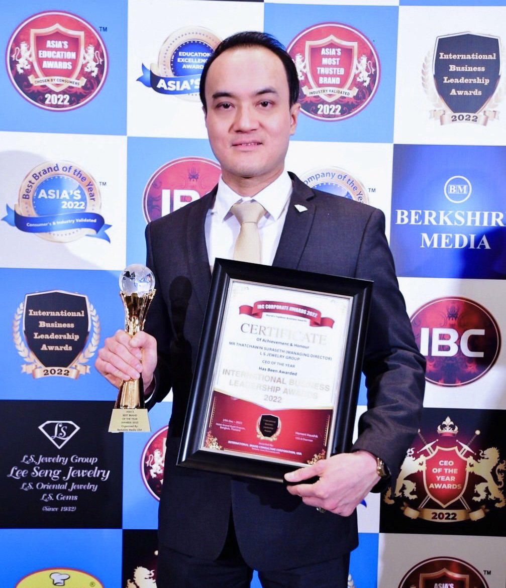 นอกจากนั้น ดร.พีรวัฒน์ - ดร.ธัชวิน สุรเศรษฐ ผู้บริหาร L.S.JEWELRY GROUP, ประธานกต.ตร.กทม.(ภาคประชาชน)-ประธานกต.ตร.บก.น.1-ประธานกต.ตร.สน.ชนะสงคราม ได้รับรางวัล INTERNATIONAL BUSINESS LEADERSHIP AWARDS 2022 ด้วยซึ่งเป็นรางวัลที่มอบให้กับผู้นำองค์กรธุรกิจดีเด่นในระดับนานาชาติ โดยได้รับมอบรางวัลจาก ท่านพล.ต.ท.วรัตม์ชัย ศรีรัตนวุฑฒิ หัวหน้าจเรตำรวจ และ Dr.Hemant Kaushik CEO&Chairman of International Brand Consulting Corporation (IBCC), USA เป็นประธาน ณ โรงแรม Grand Hyatt Erawan (Bangkok) วันจันทร์ที่ 19 ธ.ค. 65