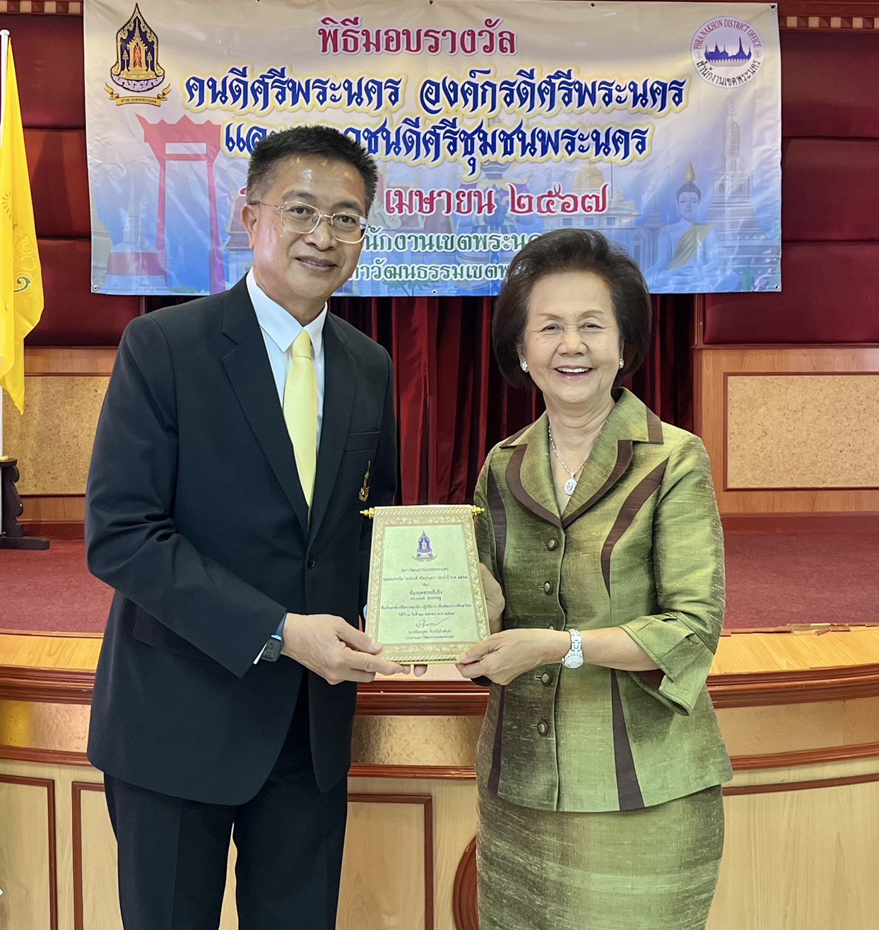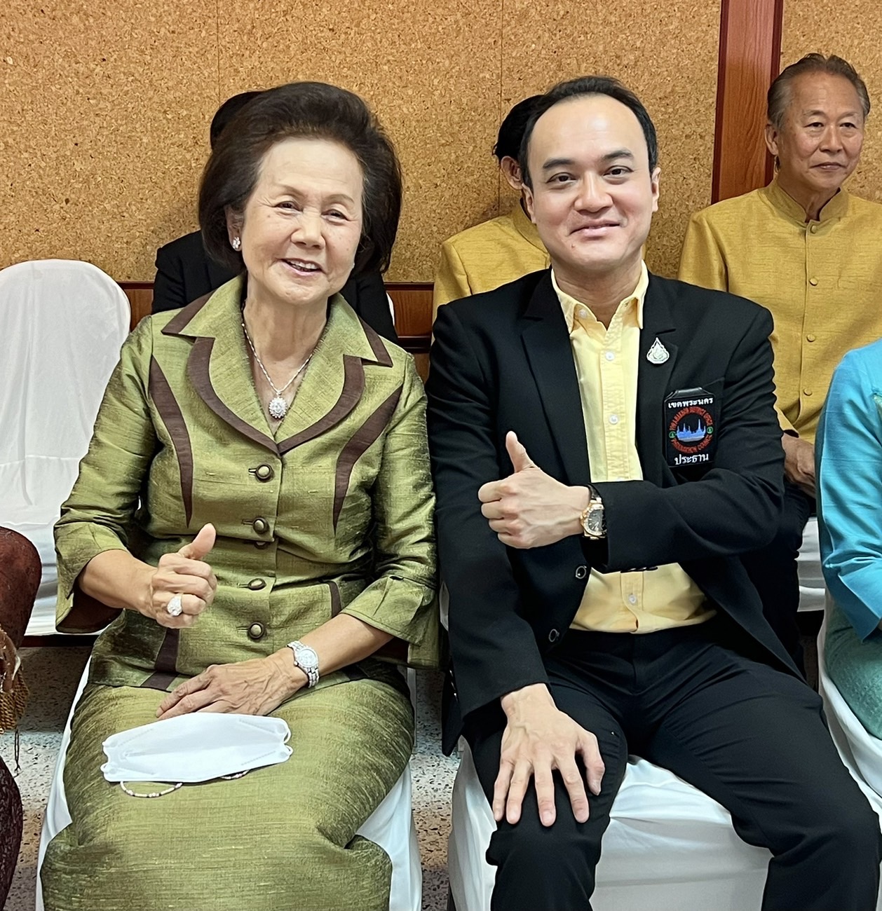 พร้อมด้วย ดร.พีรวัฒน์-ดร.ธัชวิน สุรเศรษฐ ประธานสภาฯเขตพระนคร-กต.ตร.กทม.ผู้ทรงคุณวุฒิด้านความมั่นคง-ประธานกต.ตร.บก.น.1-ประธานกต.ตร.สน.ชนะสงคราม, คุณสมหมาย เอี่ยมสอาด อดีตรัฐมนตรีประจำสำนักนายกฯ, คุณอรศรี ผลถาวร รองผอ.เขตพระนคร, คุณปิยะบุตร จิวระโมไนย์กุล ประธานสภาวัฒนธรรมเขตพระนคร ร่วมแสดงความยินดี