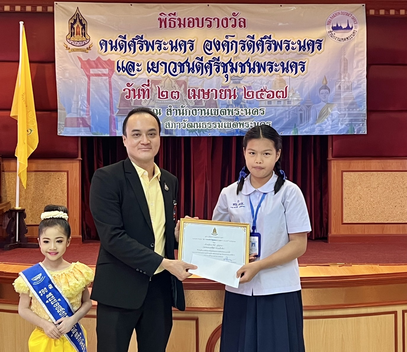 พร้อมกันนั้น ดร.ธัชวิน สุรเศรษฐ ร่วมมอบรางวัล เยาวชนดีศรีชุมชนพระนคร แก่ เด็กนักเรียนเรียนดีด้วย ณ สำนักงานเขตพระนคร วันอังคารที่ 23 เม.ย. 67