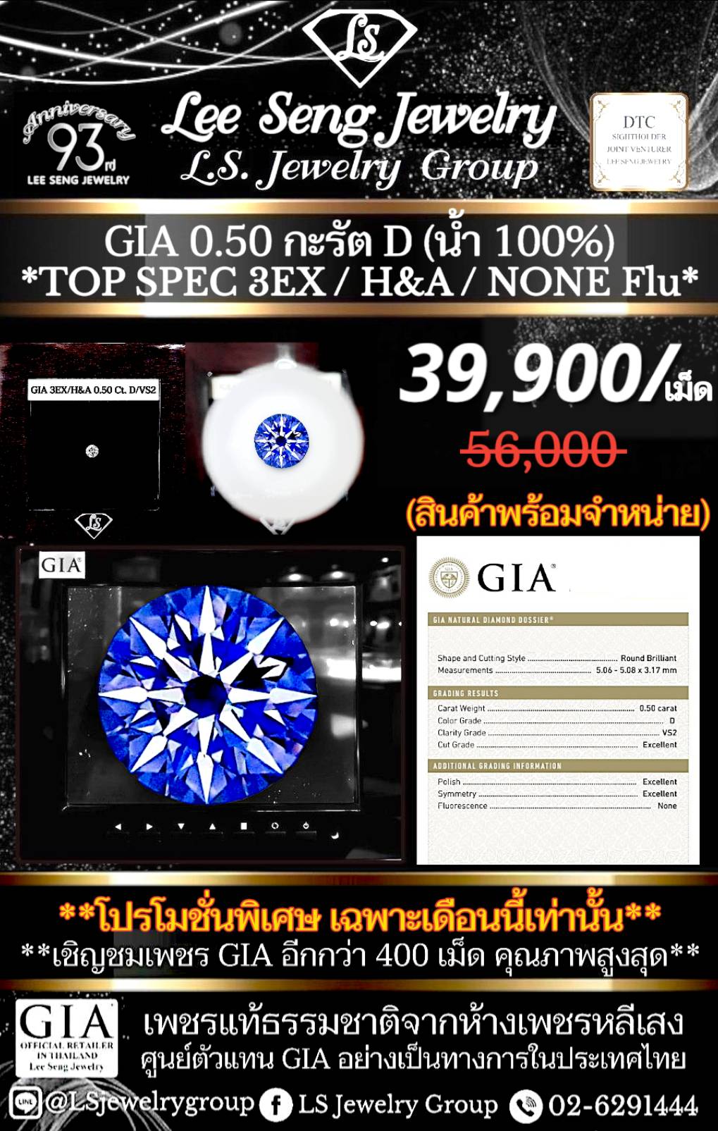 พร้อมใบ Certificate ระดับสูงสุด เช่น GIA 3 Excellent/H&A ทุกขนาด (0.50 กะรัต ถึง 10 กะรัต) ในราคาจำหน่ายส่ง