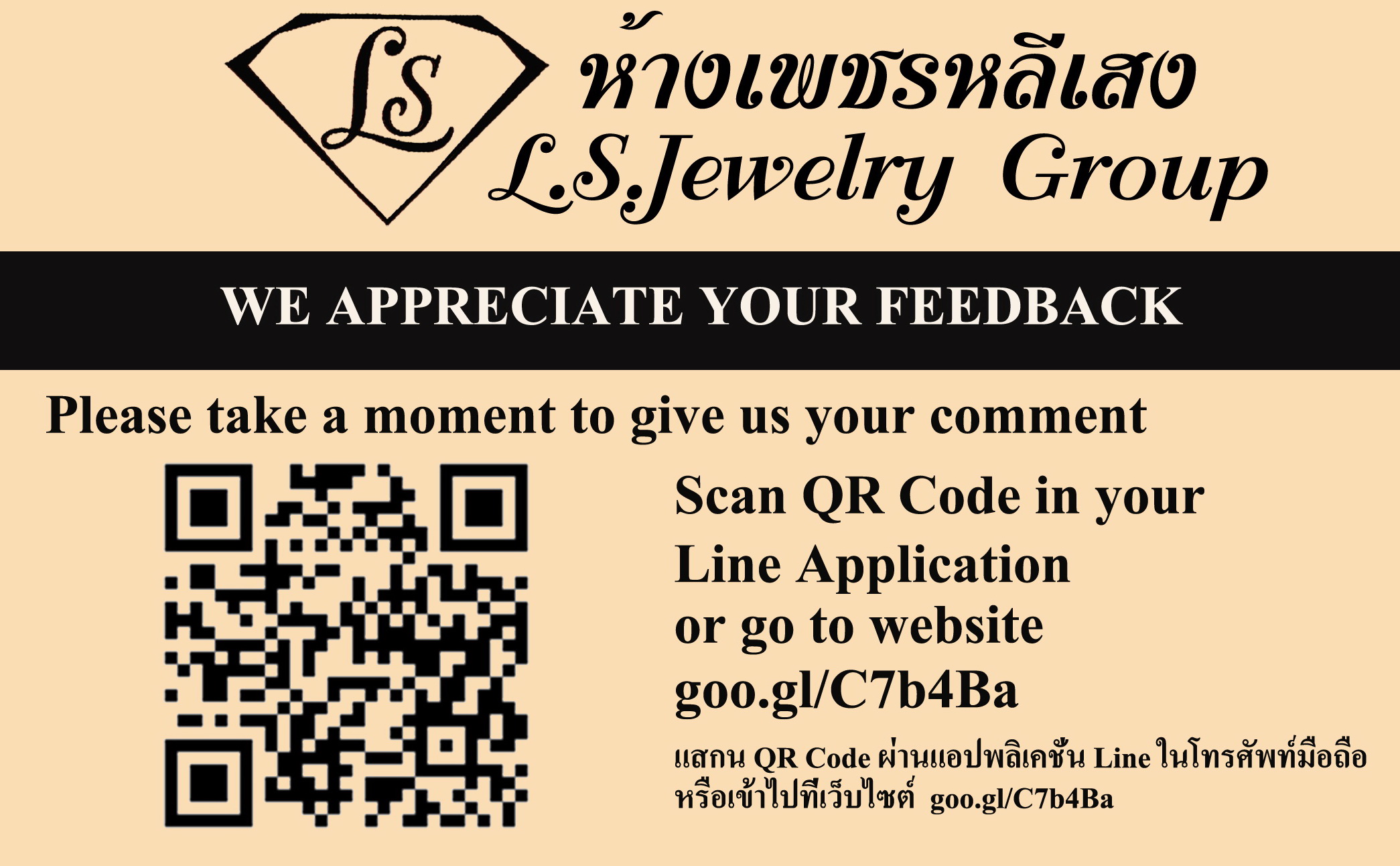 ท่านสามารถแจ้งปัญหาและข้อเสนอแนะถึงผู้บริหาร LS jewelry group โดยตรงเพื่อปรังปรุงและพัฒนาสินค้าและบริการของทางบริษัทให้ดียิ่งขึ้นค่ะ หากท่านไม่พอใจในคุณภาพหรือราคาจิวเวลรี่ที่ซื้อไป ท่านสามารถแจ้งโดยตรงได้ที่นี่ทางผู้บริหารสัญญาว่าจะดูแลให้อย่างดีที่สุดค่ะ สามารถแจ้งปัญหาและข้อเสนอแนะของท่านโดยตรงที่ E-mail: Win@LSjewelrygroup.com