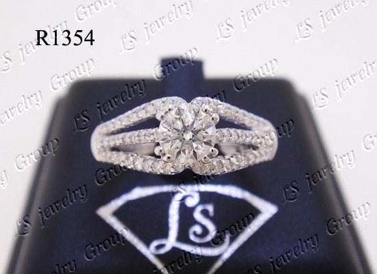 R1354 แหวนเพชร Heart & Arrow – รัชเชี่ยนคัท เพชรกลาง หนัก 0.32 กะรัต F - G Color / VVS - VSเพชรข้าง 58 เม็ด หนัก 0.35 กระรัต E - F Color (น้ำประมาณ 99 %) /VVS –VSWhite Gold 3.40 g.