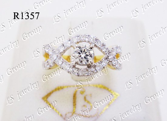 R1357 แหวนเพชร Heart & Arrow – รัชเชี่ยนคัท เพชรกลาง หนัก 0.18 กะรัต F - G Color / VVS - VSเพชรข้าง 36 เม็ด หนัก 0.75 กระรัต E - F Color (น้ำประมาณ 99 %) /VVS –VSGold 3.60 g.